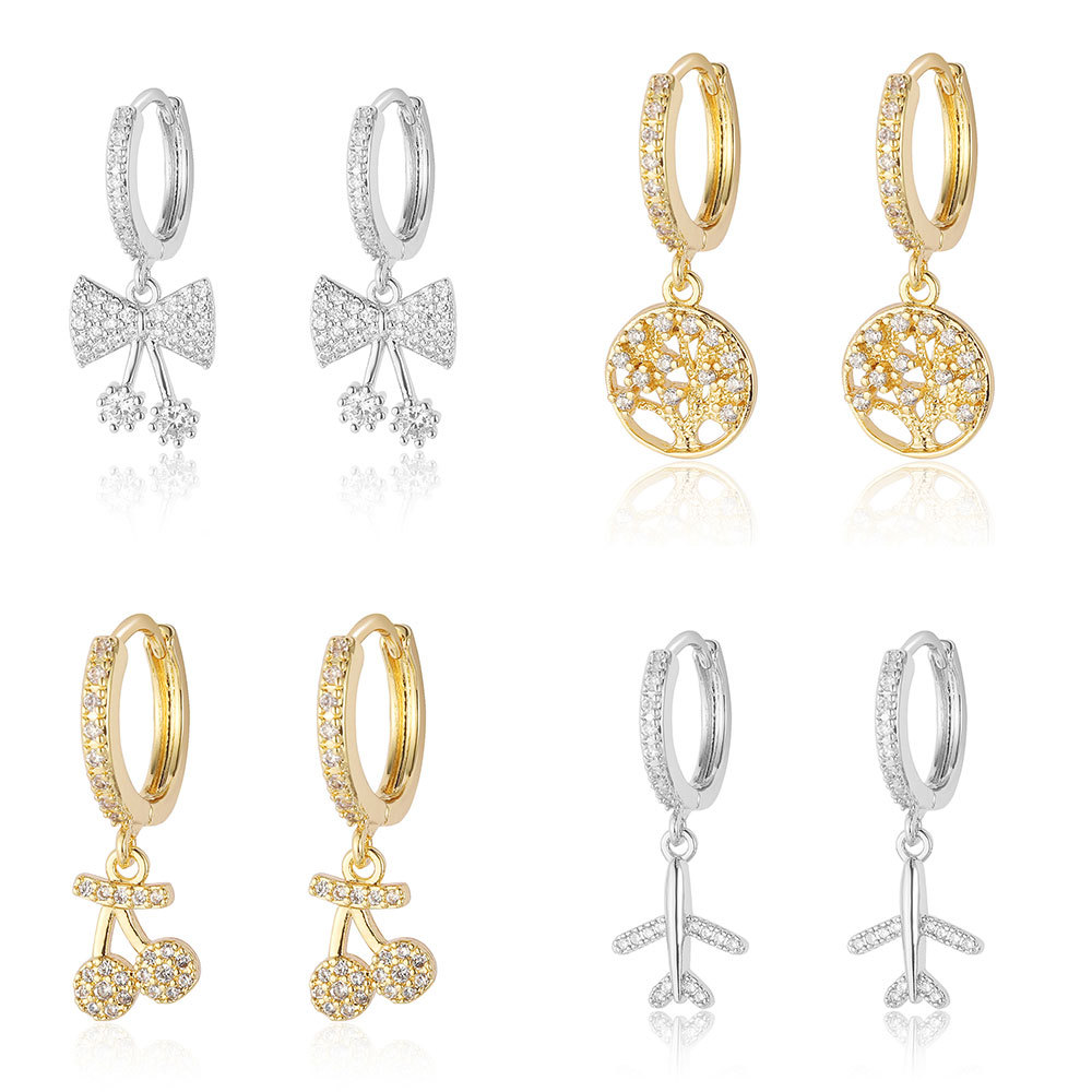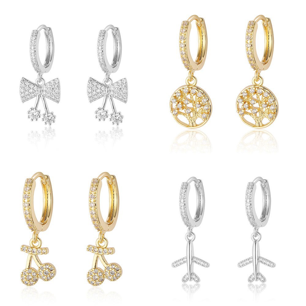 Cherry Bow Copper Zircon Women's Earrings quantity