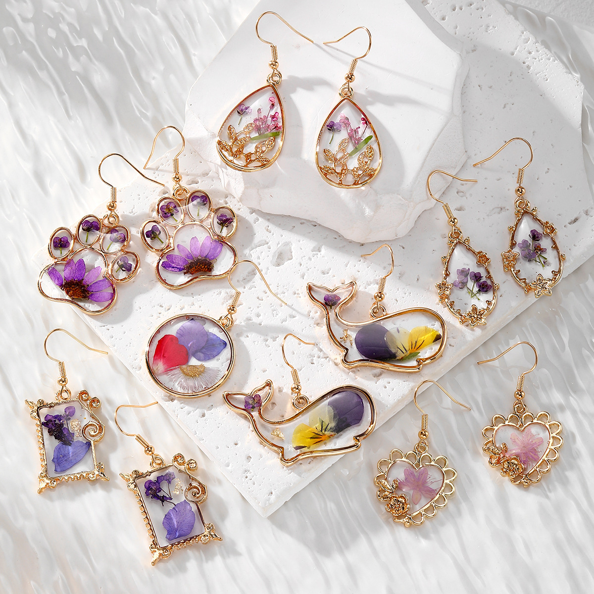 Creative Purple Series Dried Flowers Earrings Jewelry Cute Cat Claw quantity