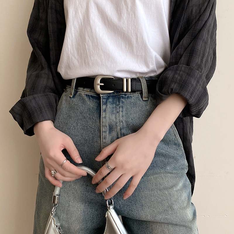 Minimalist Silver Buckle Crescent Thin Belt quantity