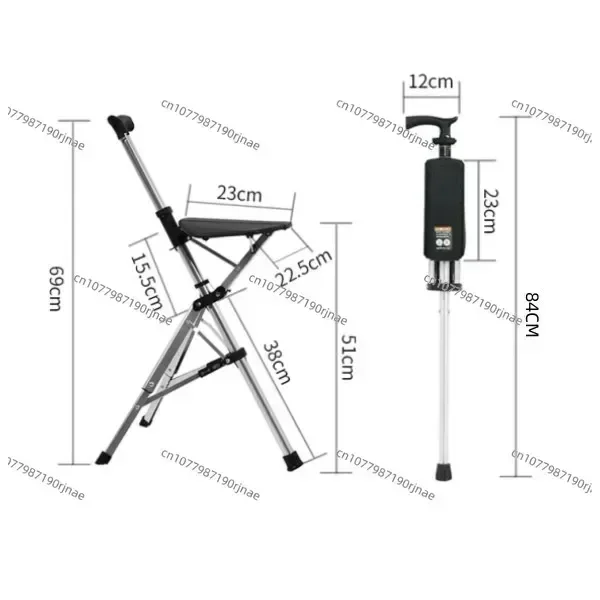 New High Quality Aluminum Alloy Foldable Walking Cane Stick With Seat Adjustable Elderly Crutch Chair With Stool