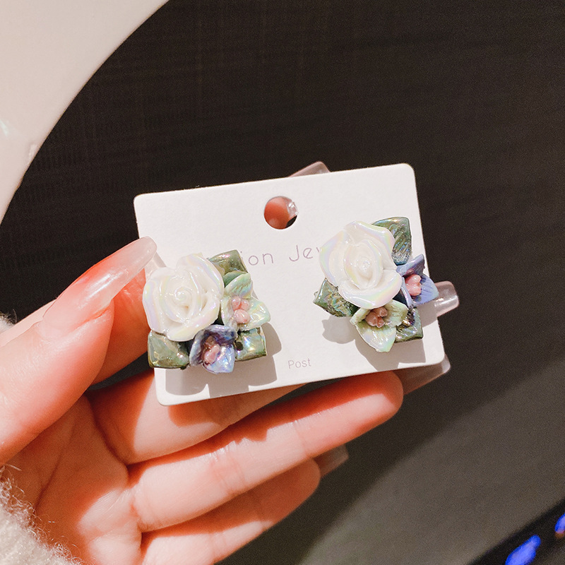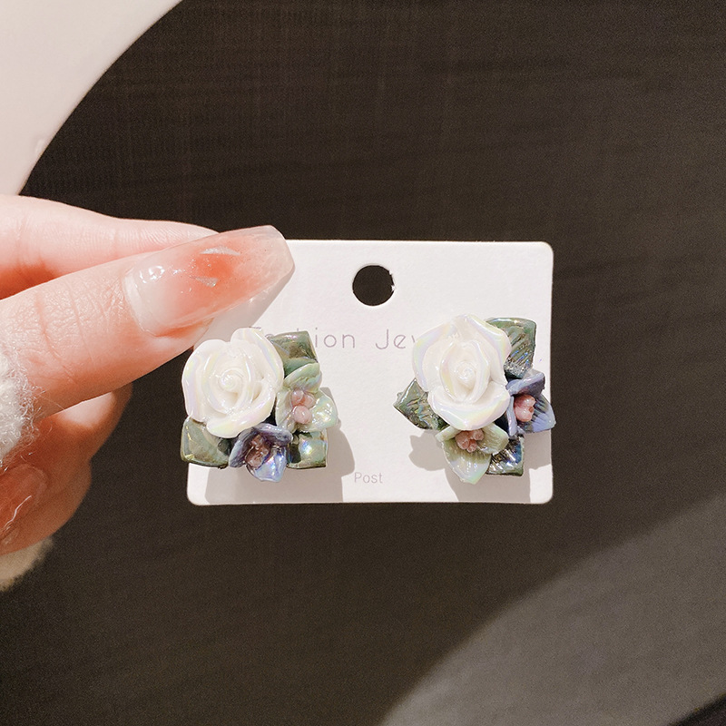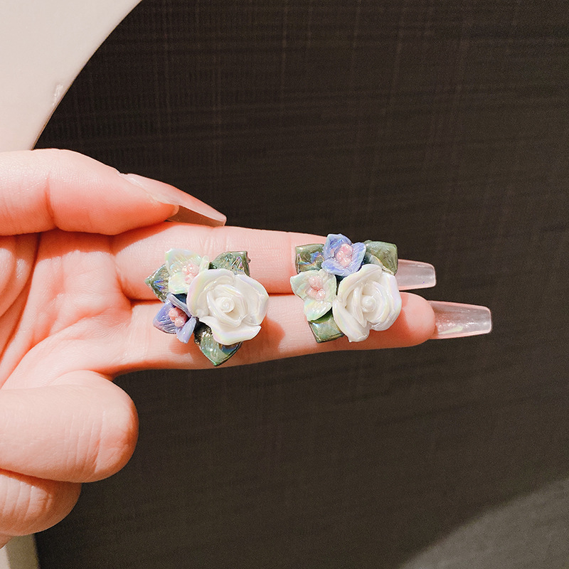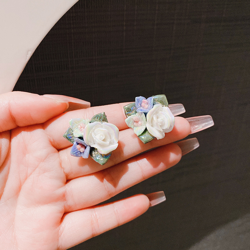 Vintage Oil Painting Ceramic Rose Elegant Pastoral Design Earrings